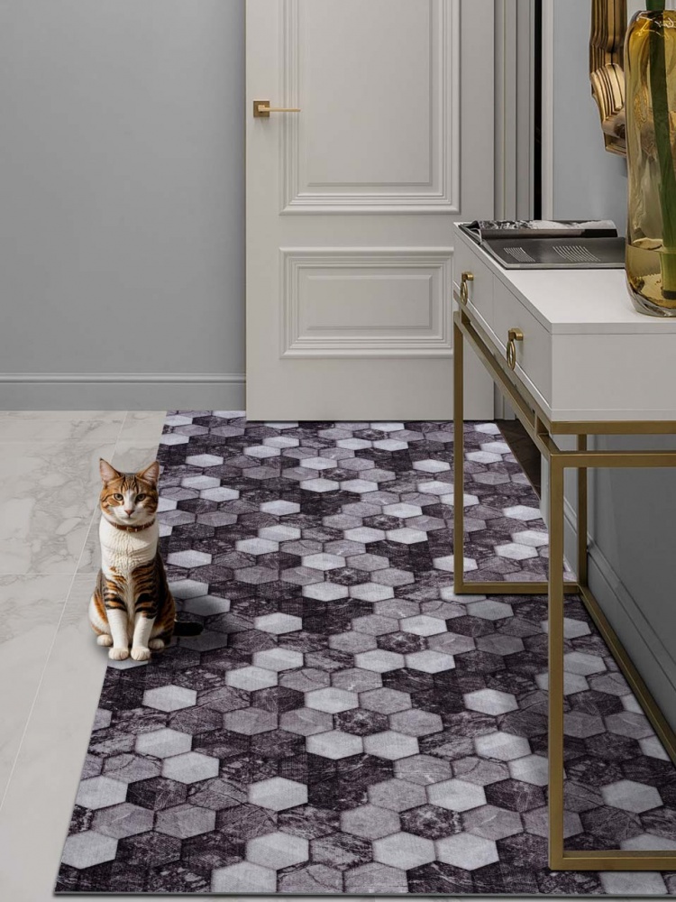 Коврик влаговпитывающий SHAHINTEX DIGITAL PRINT (28) "Соты Мрамор" 120х300 чёрно-серый S