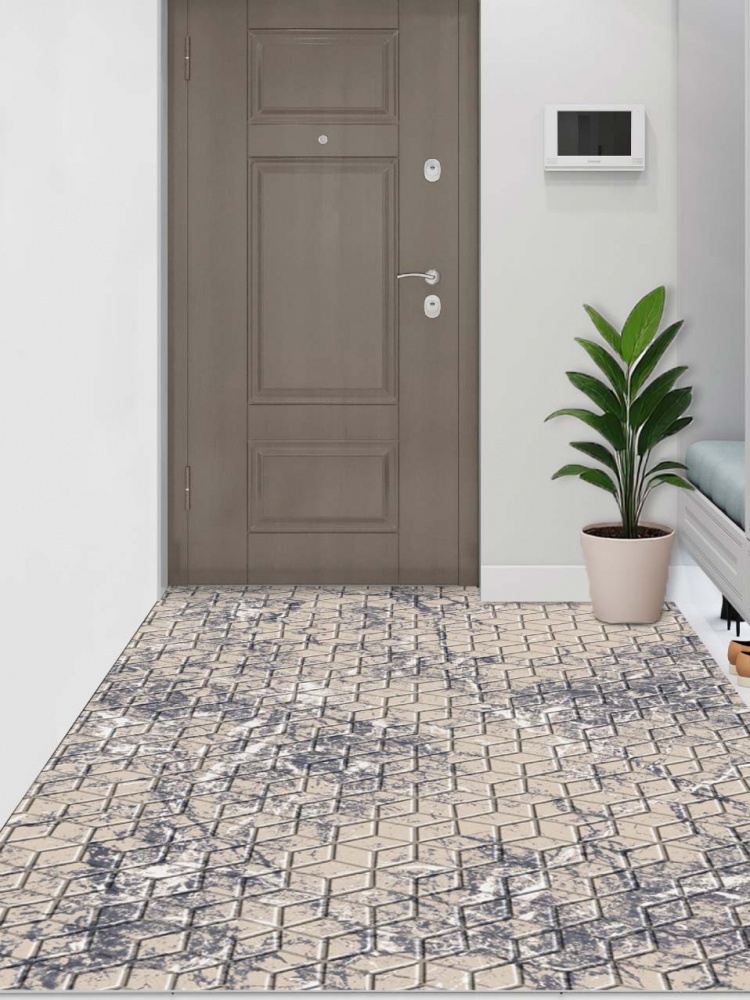 Коврик влаговпитывающий SHAHINTEX DIGITAL PRINT (35) с тиснением соты "Мрамор" 150х200 серо-бежевый S