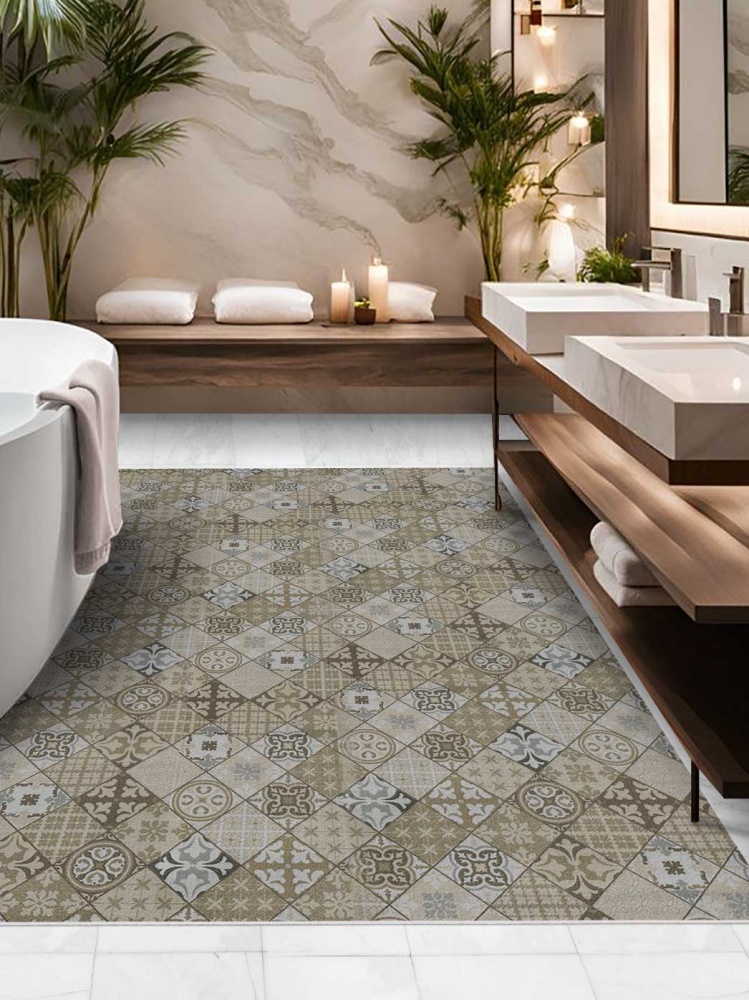 Коврик вырезной icarpet PRINT антискользящий (137) "Плитка Карфаген" 150х200 бежевый с серым S